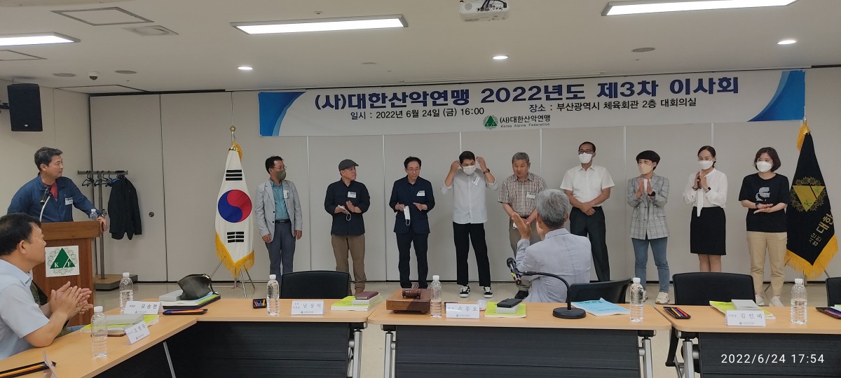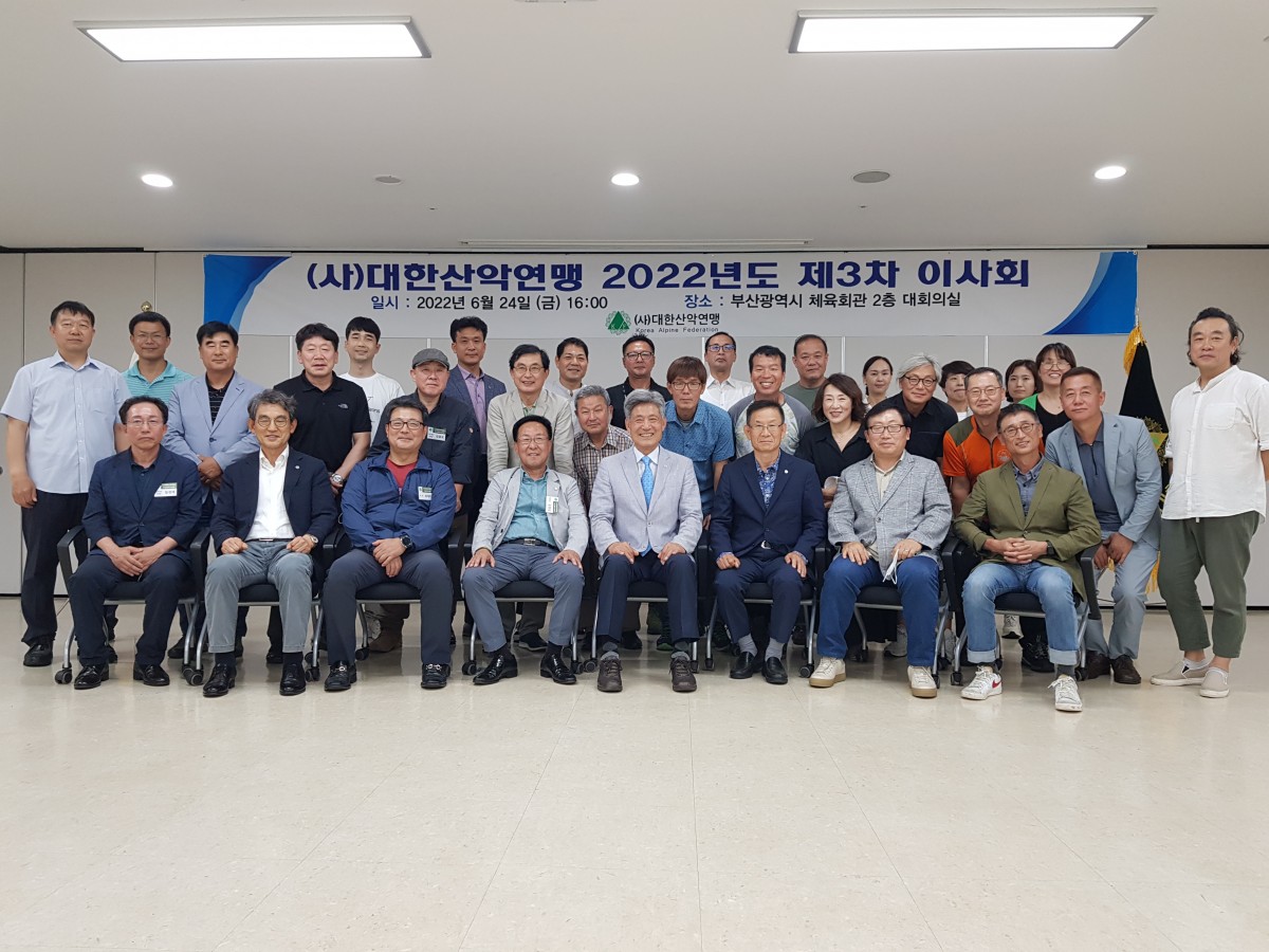 ◈ (사)대한산악연맹 중앙연맹 이사회를 2022년 6월 24일 부산광역산악연맹 사무국 소재 부산시체육회관 2층 대회의실에서 개최하였습니다.