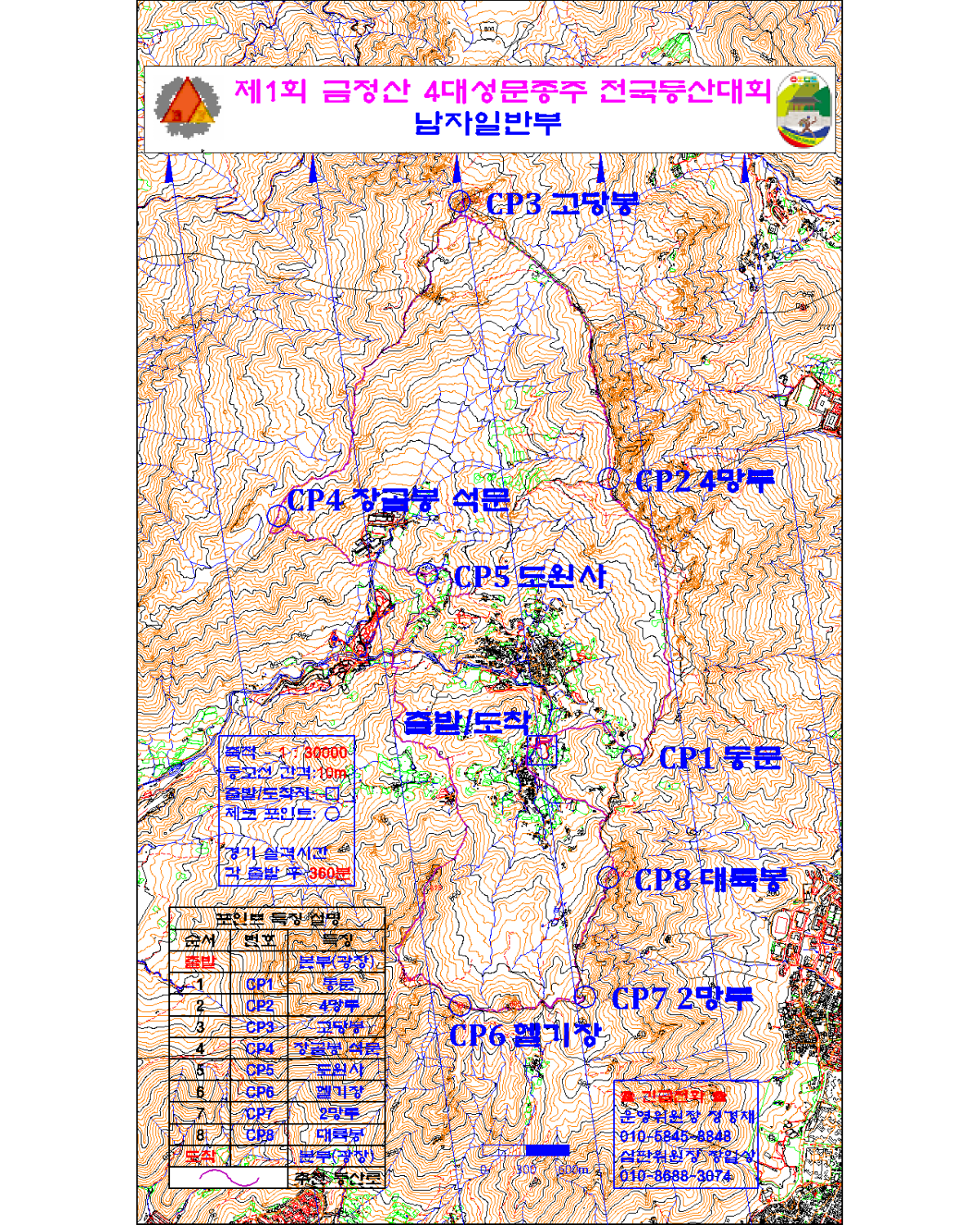 * 4대성문종주 : 광장 출발 -> 동문(CP1) -> 4망루(CP2) -> 의상봉 -> 원효봉 -> 북문 -> 고당봉(CP3) -> 장골봉.석문(CP4) -> 도원사(CP5) -> 서문 -> 파리봉 -> 헬기장(CP6) -> 남문 -> 2망루(CP7) -> 대륙봉(CP8) -> 광장 도착
