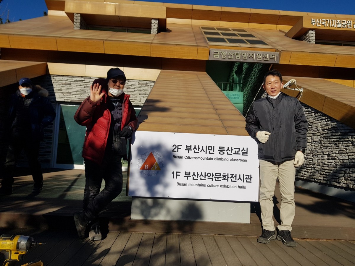 금정산탐방지원센터 내부 점검 및 외부 현판 부착 작업을 하였습니다.