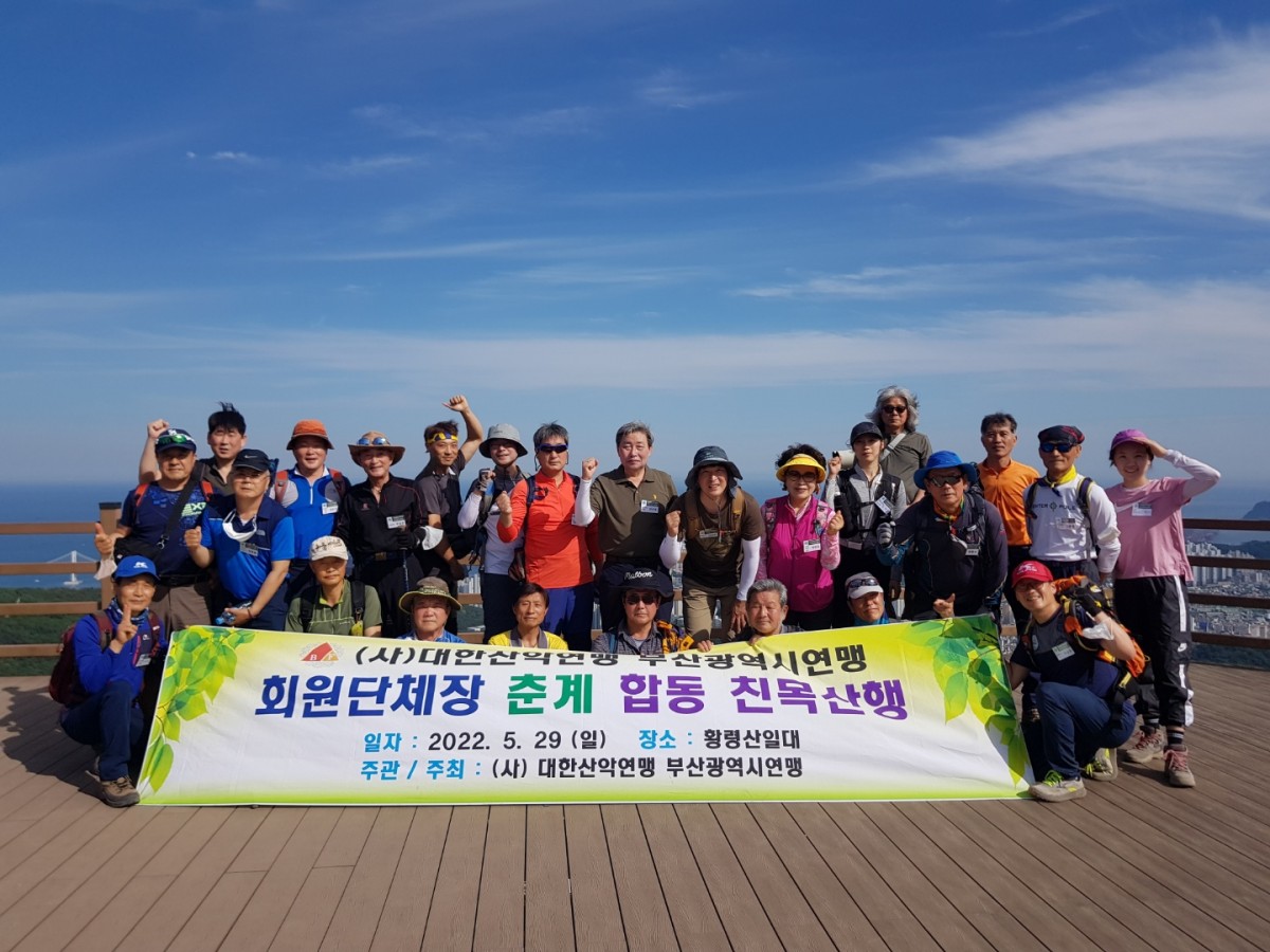 1. 정기 총회일시 : 2022. 5. 29(일). 18:00장소 : 부산진구 롯데겔러리움 웨딩홀 뷔페2. 친목산행일시 : 2022. 5. 29(일) 14:00산행지 : 황령산집결지 : 부산지하철2호선금련산역 6번 출구