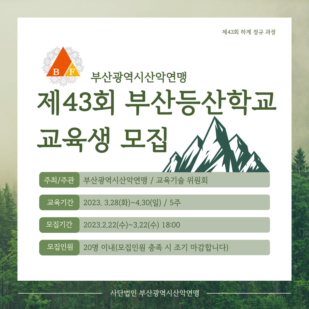 23년 제 43회 부산등산학교 교육생 입교식